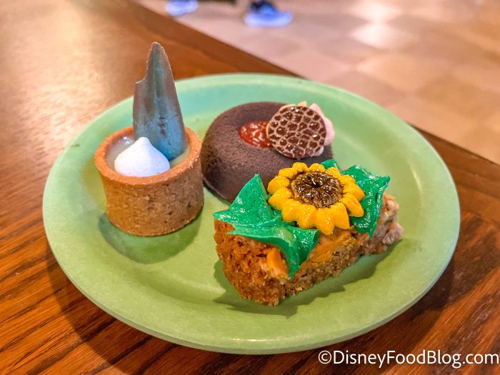 Finally, let’s talk about dessert! There’s a Fab Five Safari Brownie — it has Mickey and friends on top.