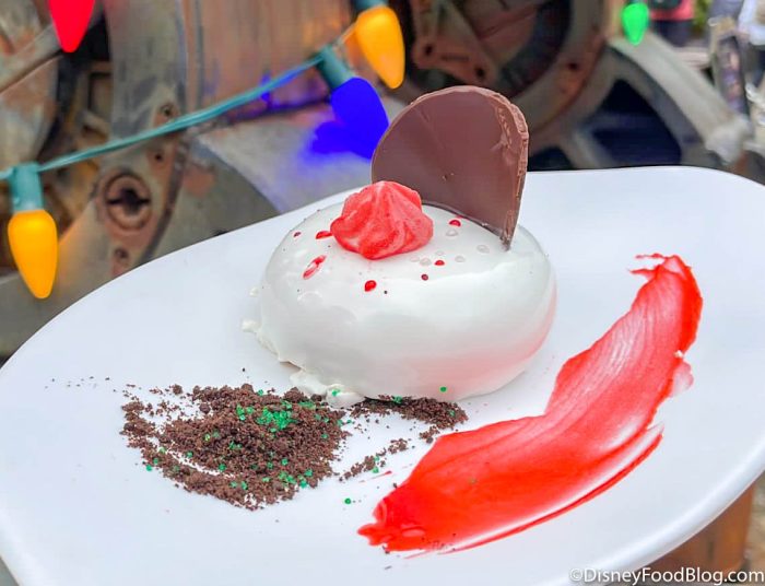 - Holiday Mickey Mousse: Chocolate chiffon cake, white and dark chocolate mousse, and white chocolate crisp pearls (New) (Available from November 11th through December 30th)