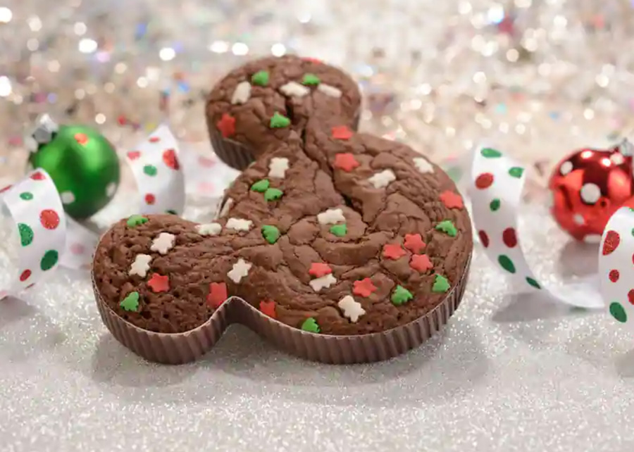 - Mickey Mouse Brownie: Chocolate brownie with holiday sprinkles