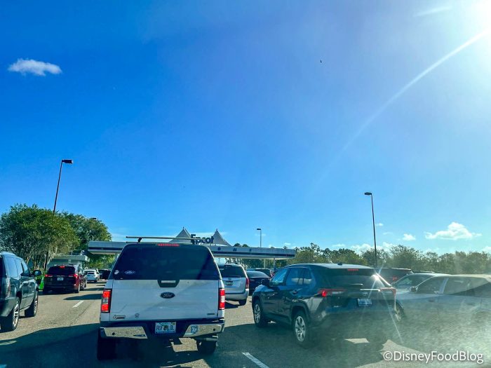 When we drove up to EPCOT, we waited in a LONG line of cars just to park! When we got into the parking lot, we had to park a lot further out than we usually do at that time of the morning.