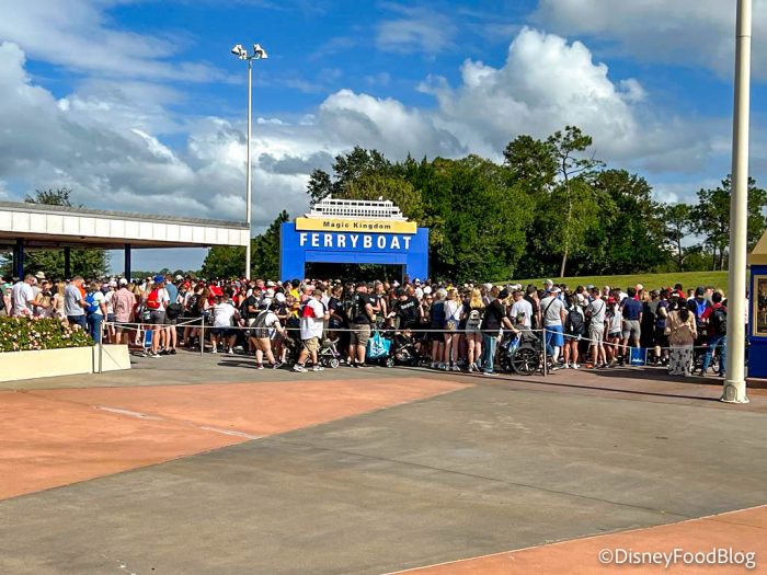 The ferryboat line wasn’t much better — the queue looked to be completely filled up with guests trying to get to Magic Kingdom.