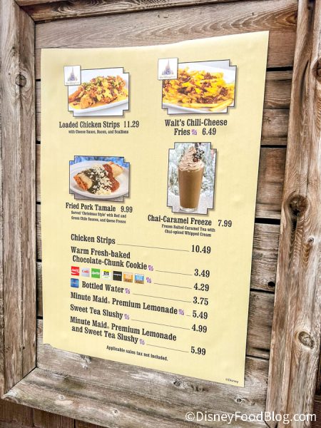 Come with us to Golden Oak Outpost in Frontierland to see what they’ve got on the menu! They’re serving up not one, but two new snacks we can’t wait to try — starting with the Fried Pork Tamale served Christmas Style for $9.99. This is a fried pork tamale topped with red and green chile sauces and queso fresco.
