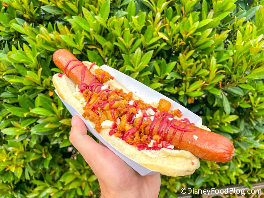 For those hoping to visit a staple Magic Kingdom for a holiday treat, look no further than Casey’s Corner. They are serving up a Holiday Dinner Dog with all the fixin’s.