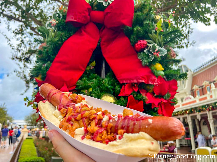 The Holiday Dinner Dog is available from now until December 31, 2022. And you can find it during regular Magic Kingdom park hours or during Mickey’s Very Merry Christmas Party. If you stop by during the party, you can also check out the new Christmas Tree Cake!