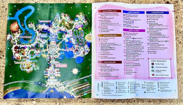 We love these maps because they are like a free little Disney souvenir that you can keep! Inside you will find the locations for all of the holiday-themed snacks you can get at the party.