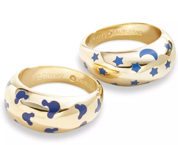 The Sorcerer Mickey Mouse Ring Set features two solid rings covered in patterns inspired by Fantasia. One ring has Mickey heads, while the other has the stars and moon pattern from Mickey’s hat. Grab this set in your ring size for $54.