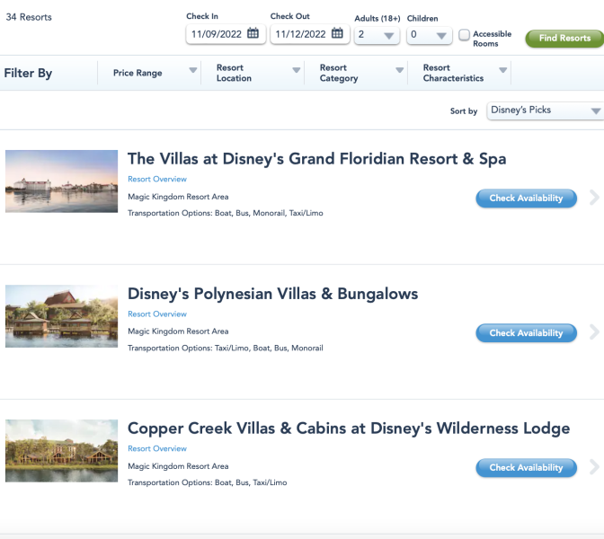 As of Tuesday morning, Disney World had removed all hotel availability from its website — in other words, you cannot book any new hotel rooms for stays at Disney World starting on Wednesday, November 9th.