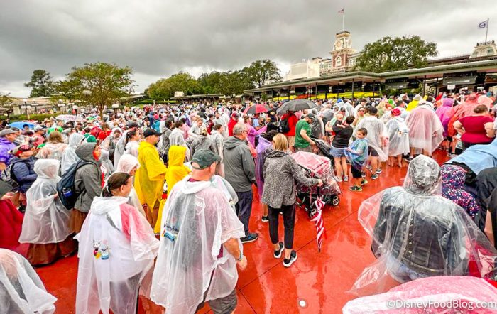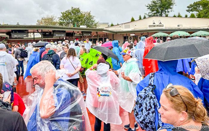 Despite the bad weather (click here for updates on Tropical Storm Nicole and its impact on Disney World), there were plenty of guests waiting to enter the park. Most people had ponchos and umbrellas with them, which is a good thing as it has already started to rain.