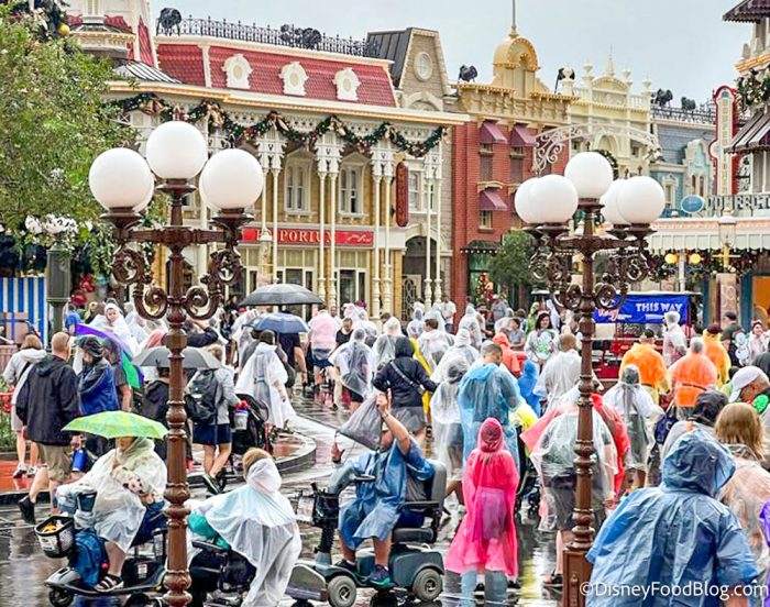 It’s very wet and the clouds are looming, but it’s time to kick off Mickey’s Very Merry Christmas Party in Magic Kingdom! ✨🎄🌧