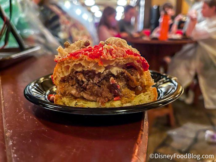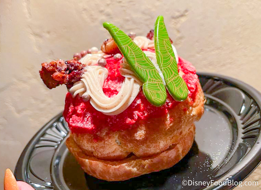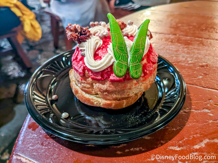 If you’re looking for something on the sweeter side, the Tinker Bell Cream Puff might be more your speed. This is a cream puff and compressed carrot cake topped with spiced cream cheese icing, spiced walnuts, and chocolate wings for $6.79.