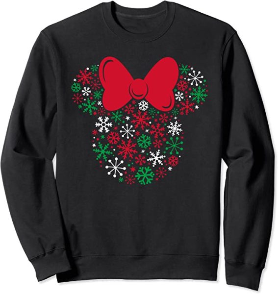 Go more understated with this Minnie Mouse Icon Holiday Snowflakes Sweatshirt. Minnie’s silhouette is instantly recognizable and is made out of snowflakes of a variety of sizes and shapes, all in traditional Christmas colors. A matching red bow finishes off this look!