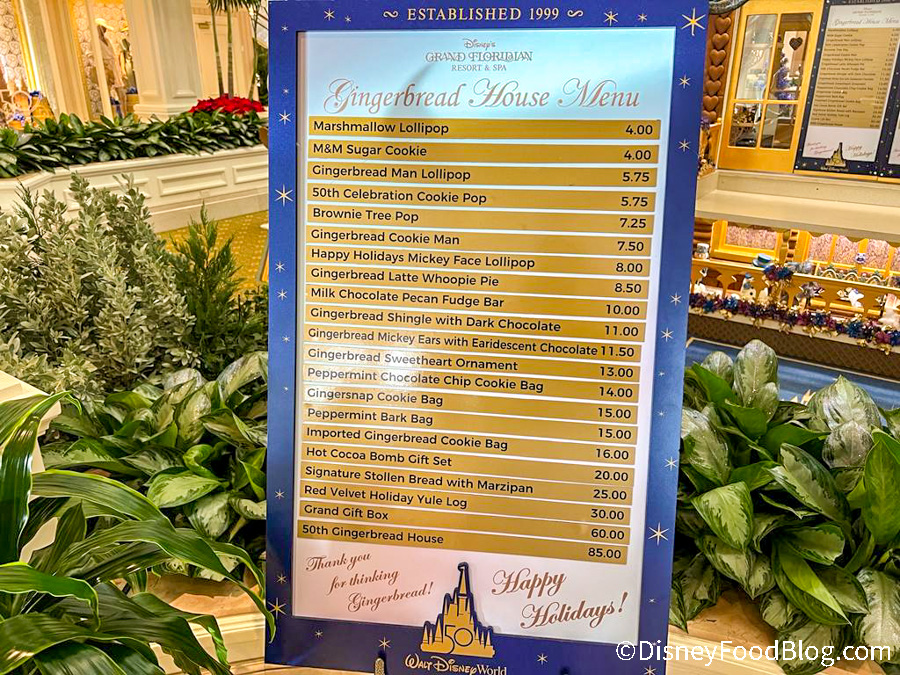 There are a ton of treats sold out of the giant gingerbread house, which is in the lobby of the Grand Floridian. Here’s a look at the full menu…