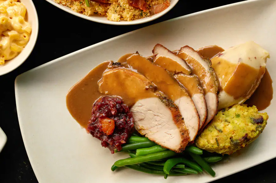 Olivia’s Café: Stop by Olivia’s for their Traditional Thanksgiving Feast. Roasted turkey breast, with roasted garlic mashed potatoes, green beans, cornbread stuffing, cranberry sauce, and gravy come together for a delicious spread. Available November 24th only.