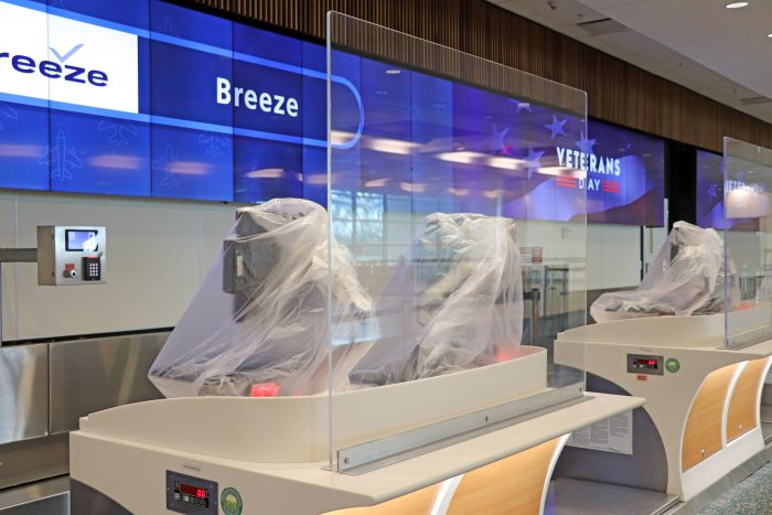 In addition, the ticket counters were covered for “security and protection.”