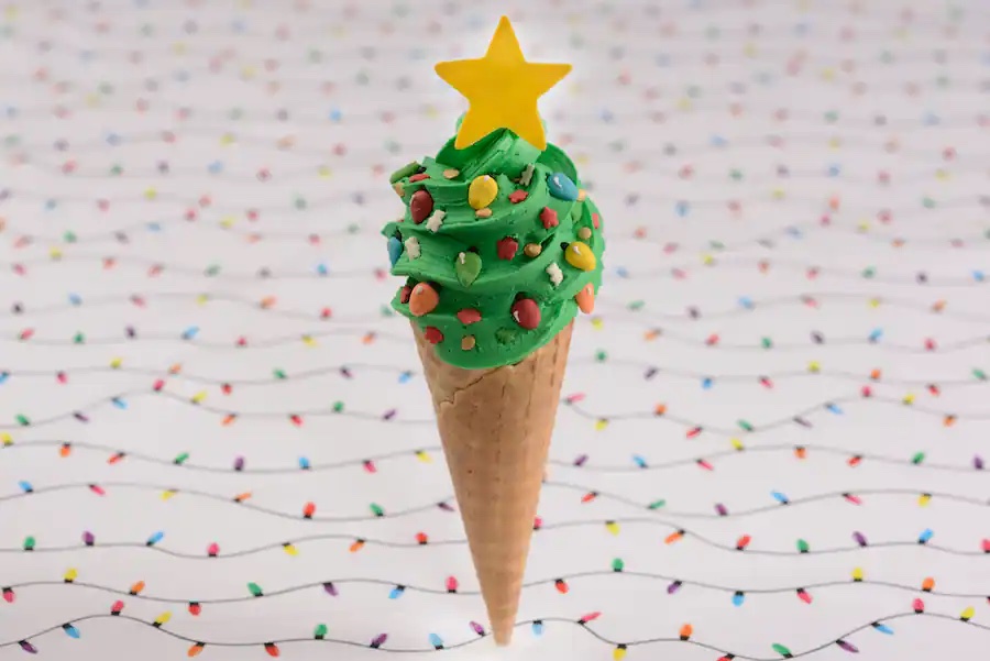 - Christmas Tree Swirl: Vanilla soft-serve ice cream with edible sugar lights, sprinkles, and a white chocolate star (New)