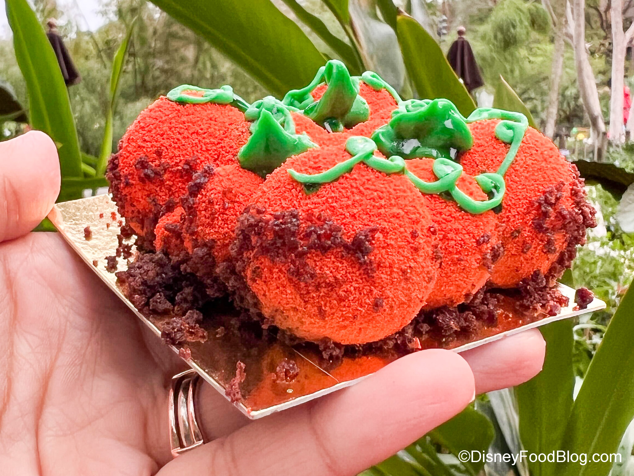 You can get the Pumpkin Patch here — and yes, we know we’re no longer in the Halloween season, but this is still available. This is Pumpkin Mousse with Cranberry Gelée.