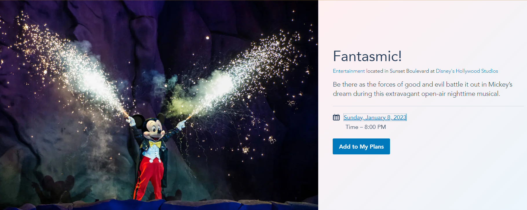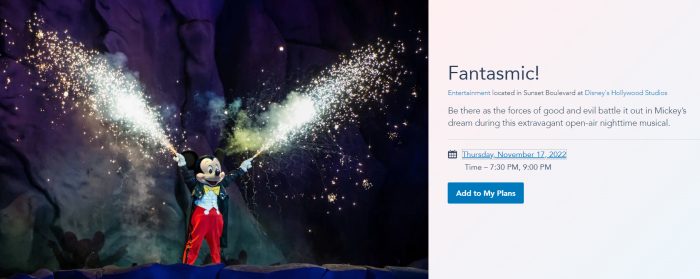 Note that showtimes could change and they do change all of the time, so be sure to check the Disney World website or My Disney Experience app to double-check those times!