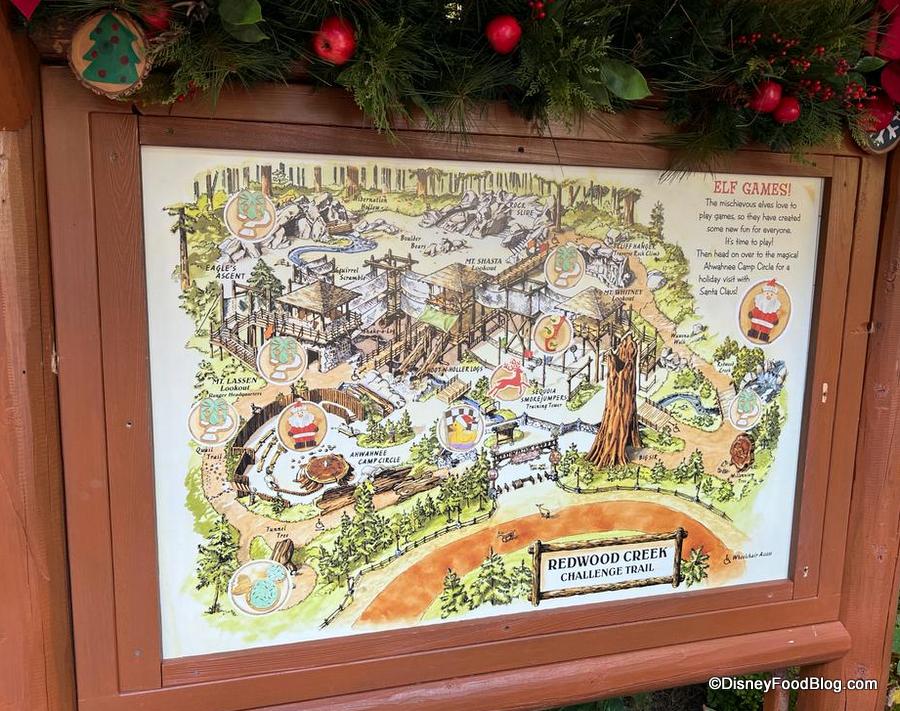 This trail has a “Camp Notices” board with details about everything you can do on the trail (like meet Santa!).
