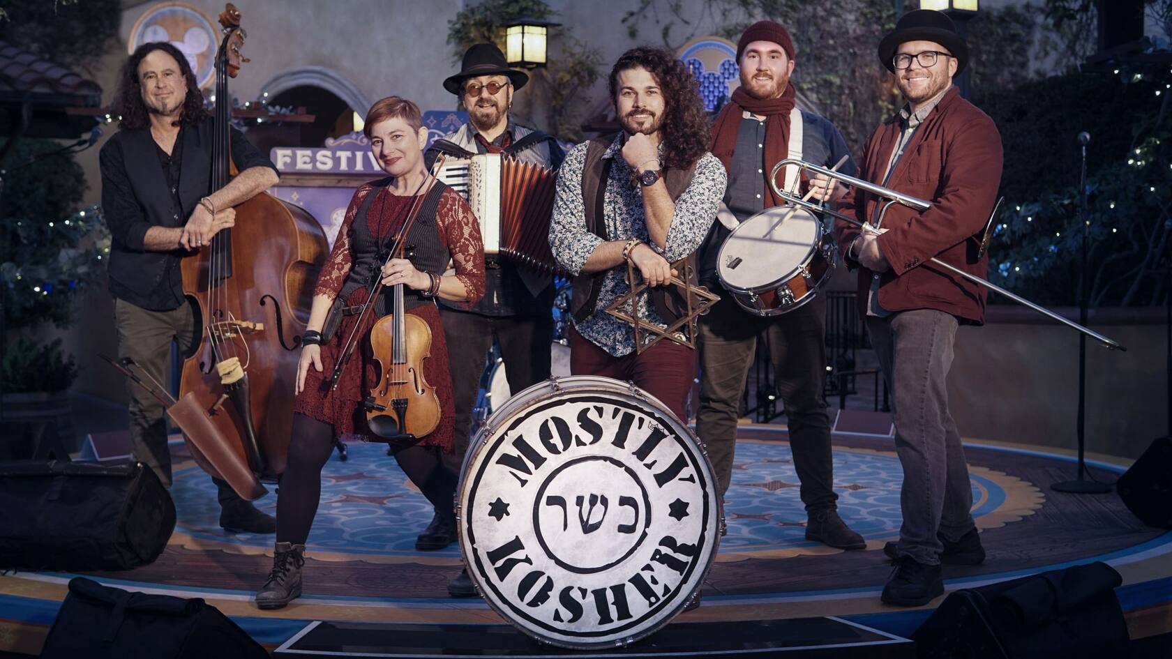 Mostly Kosher is a band that honors Hanukkah with a blend of music including klezmer, jazz, Latin, and rock. This group is performing over on the Sonoma Terrace.
