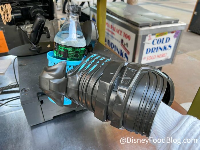 Right now you can grab Shuri’s Gauntlet only in Avengers Campus! This collectible is similar to gauntlets we’ve seen in the past — the arm looks like the superhero’s costume, and it holds a drink. It costs $28.99 if you get it with your choice of a Coca-Cola bottled beverage, or $37.99 if you get it with Shawarma or a Spiced Pork Black Garlic Wrap.