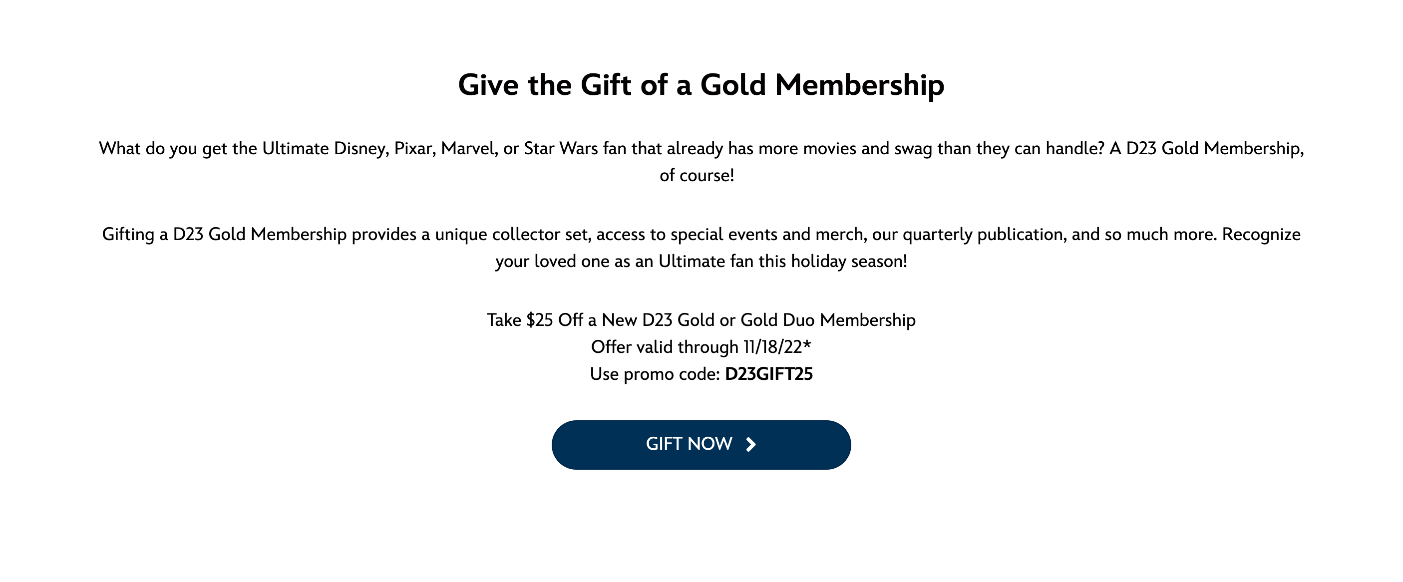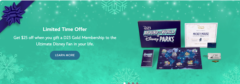 If you gift a D23 Gold or Gold Duo membership to someone else, you can save $25 as long as you order on or before November 18th! Be sure to use the promo code D23GIFT25 at checkout.