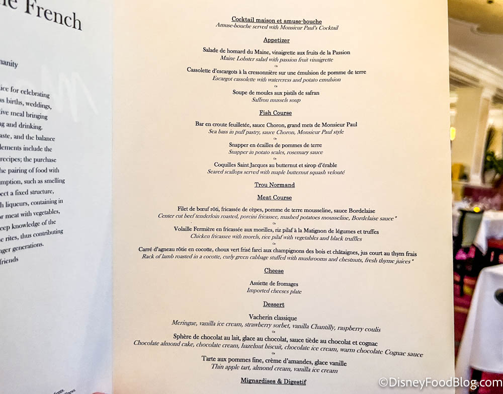 We have seen the introduction of many prix fixe menus at Disney World, in its “fanciest” restaurants such as Be Our Guest, California Grill, and Space 220. Prix fixe menus allow guests to pay a fixed price for their meal — they then have a handful of choices for each course.