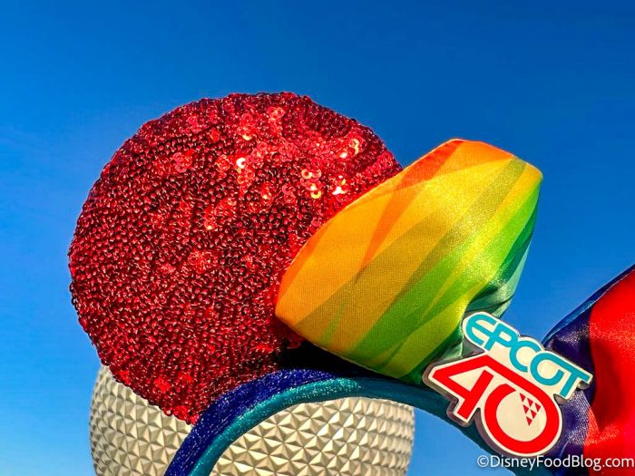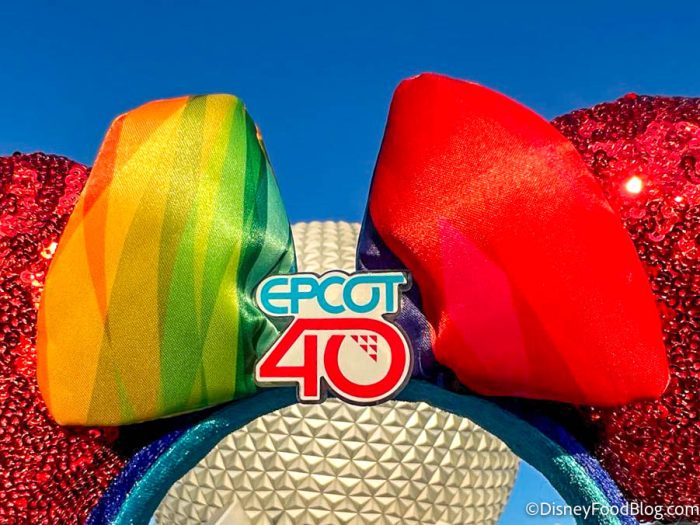 In the center, you’ll find a puffy bow with a rainbow design and the EPCOT 40 logo in the center.