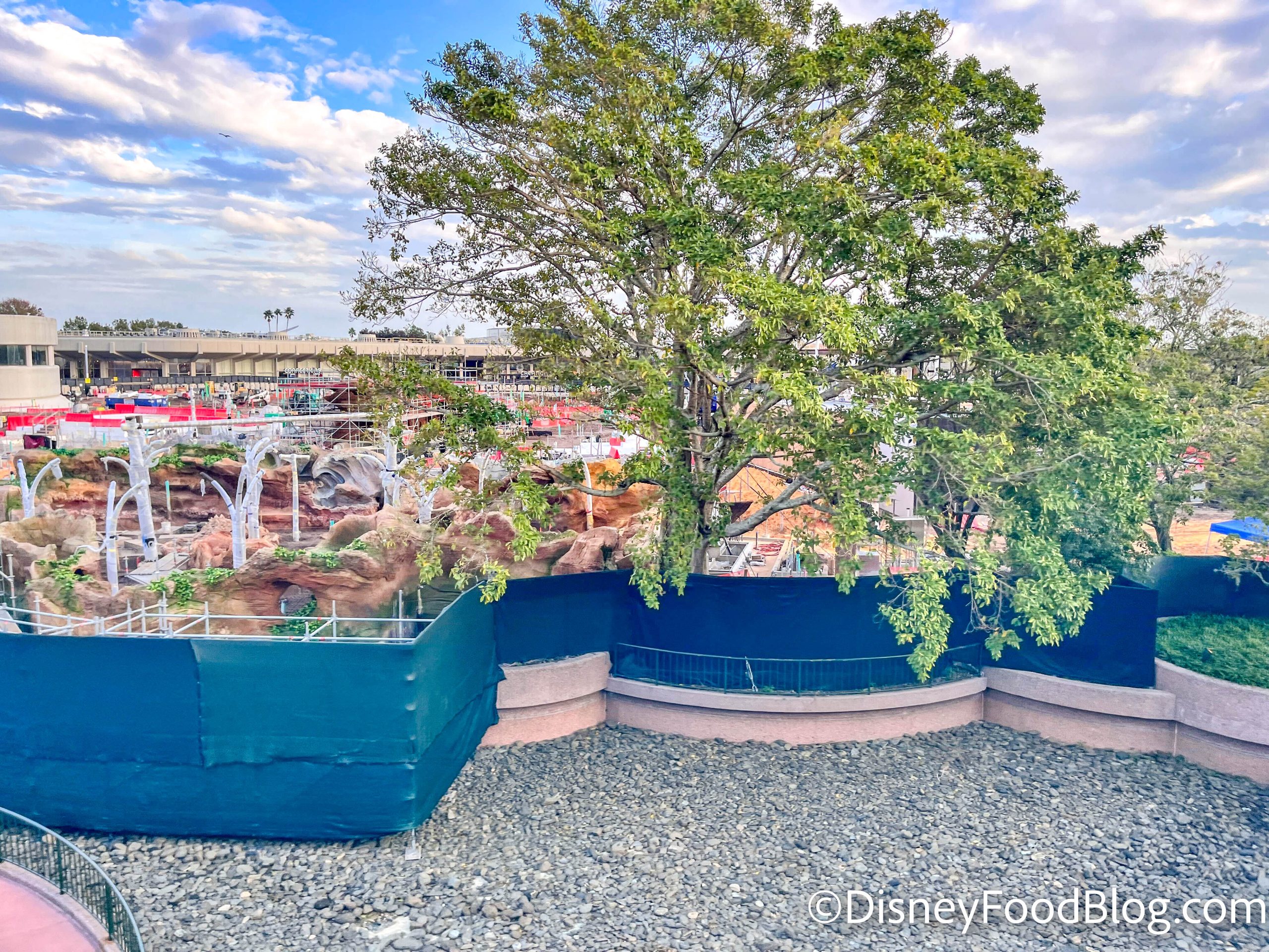 And finally, we have a photo to show the construction nearest to Spaceship Earth. Directly behind the EPCOT icon, you’ll find some beautiful gardens and Dreamers Point, which will include a statue of Walt Disney. Right now, not much is changing in this area, but we’ll keep our eyes peeled for more updates!