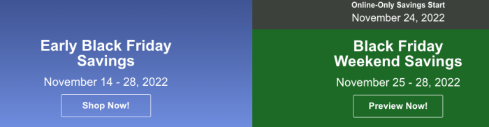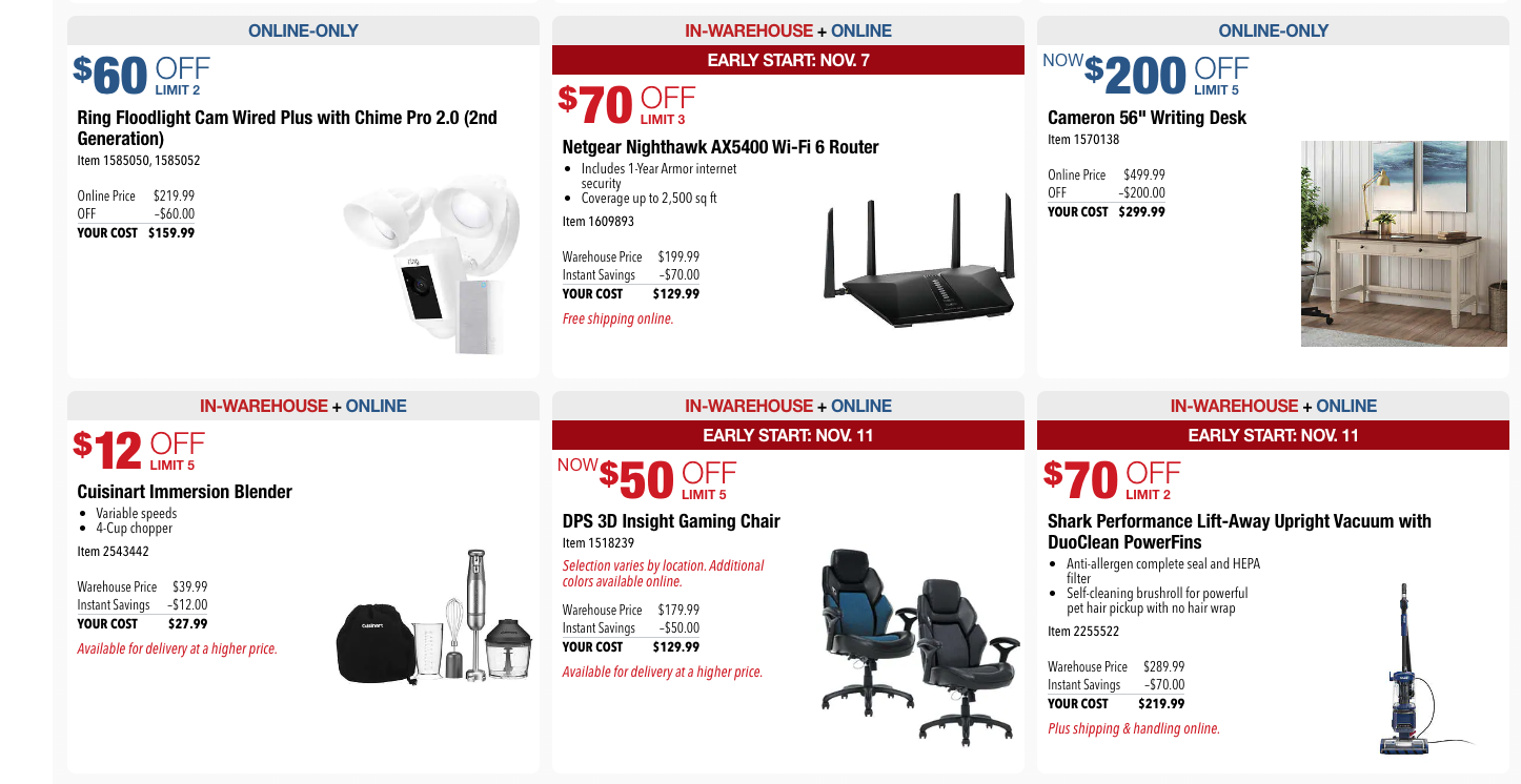 Both deals will be available online and in-warehouse, and the early start for online-only access begins November 21st. After the early start, they should be available November 25th-28th.