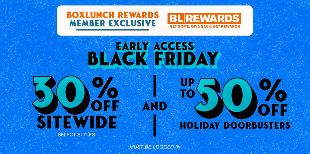 BoxLunch is also only offering Black Friday deals for BoxLunch Rewards Members right now, but it is also free to join their rewards! Sign up online and start shopping.