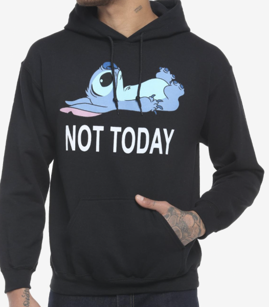 There is a deal going on right now for buy one, get one $10 on hoodies, sweaters, and long sleeve shirts. Part of this sale is the Stitch Not Today Hoodie.