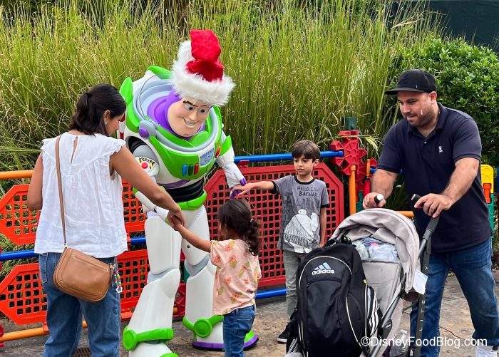 The characters in Toy Story land are in their holiday outfits. We saw Woody and Jessie…