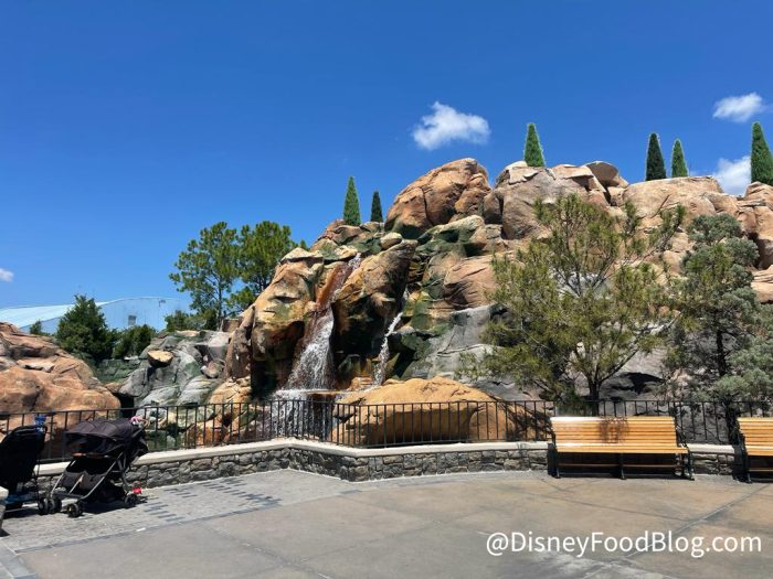 Move over, Journey of Water — EPCOT already has a waterfall attraction, kind of. If you’ve never been to Le Cellier or seen Canada Far and Wide, you might not have any idea that behind the entrance of the Canada Pavilion lies a huge display of large, mountainous boulders and waterfalls. These are some pretty big waterfalls, too, and because of that, there’s a loud, rushing water sound that drowns out all the park noise.