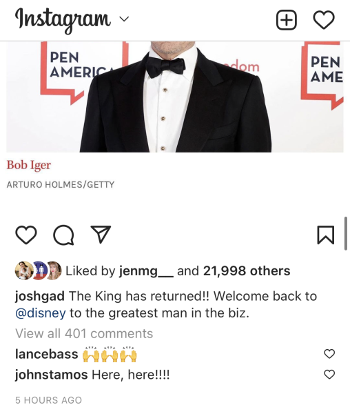 The Disney Board of Directors announced this change late in the evening on November 20th, noting that Bob Iger would resume his role as CEO effective immediately, and Disney’s stock values proceeded to increase significantly the following Monday morning. Many people have been commenting on this change and what it could mean for the future of The Walt Disney Company, and we’ve compiled some of the reactions we’ve found across social media.