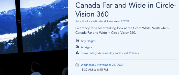 But now, Canada Far and Wide is listing showtimes beginning on November 23rd, 2022 from 8:30AM to 8:45PM.