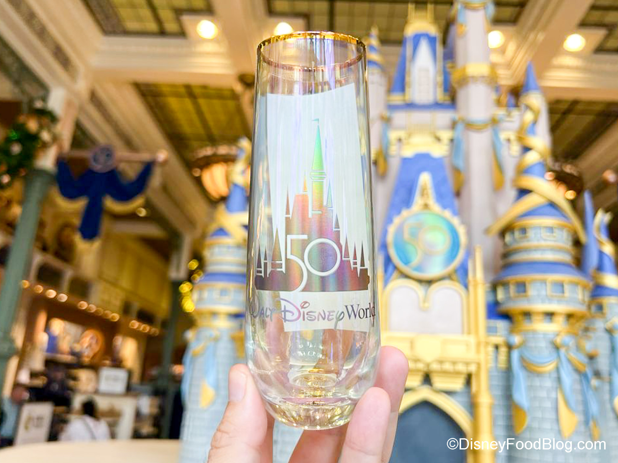 It’s the 50th Anniversary Glass — and this baby is SO pretty! It’s a tall skinny glass with a gold rim and the 50th anniversary logo on it.