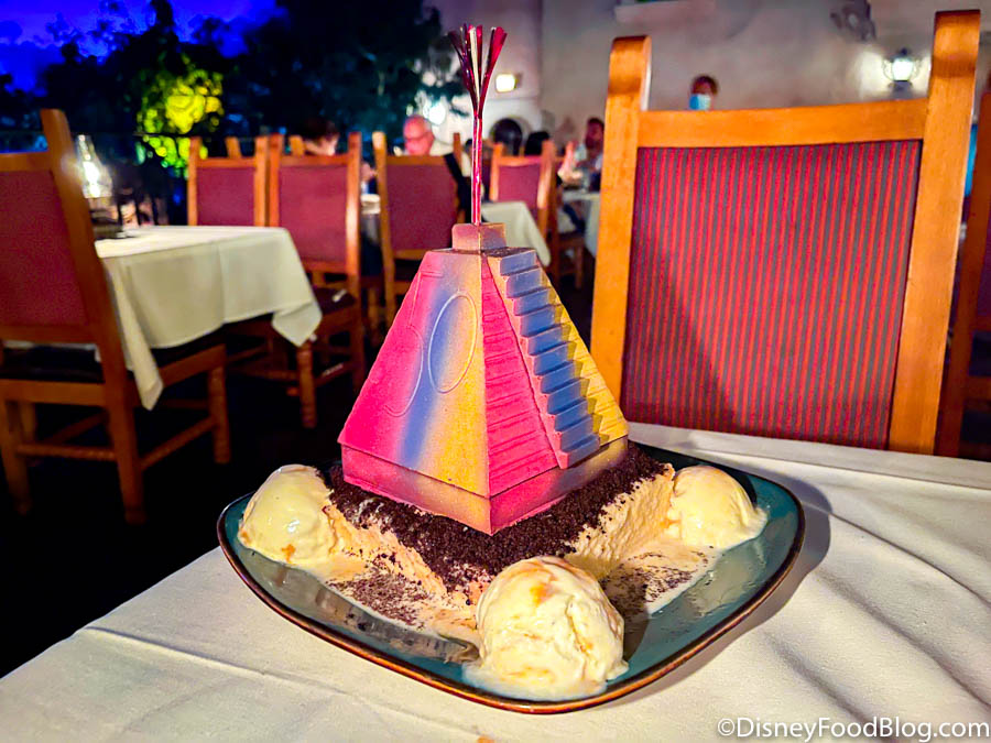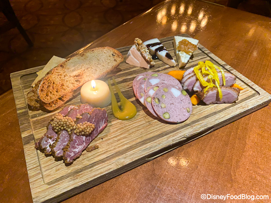 We sing the praises of Le Cellier as often as we can. This signature restaurant has not only the best cuts of steak in the park, but the best cuts of steak on property (in our humble opinion). Every time we visit, the service has been consistently good, and the food has been so delightful that we’ve wanted to reverse time just to experience it all over again. Along with the steak cuts, Le Cellier also has other top-notch options — like their signature poutine, Canadian Cheddar Cheese Soup, and Artisan Cheese and Charcuterie Plate. You can even eat the CANDLE on this charcuterie board, which is a bucket list item we didn’t realize we had until we experienced it firsthand.