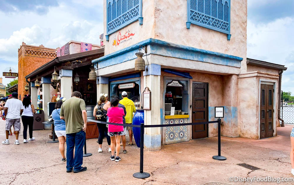 If you’re walking through the Morocco Pavilion, there’s a good chance you’ve completely looked over the Oasis Sweets and Sips window. And that makes me sad for you because this place is just a gem.