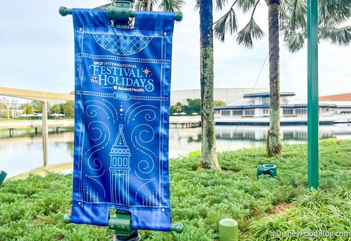 You can find signs and decorations for the Festival of the Holidays around EPCOT starting right at the entrance of the park.