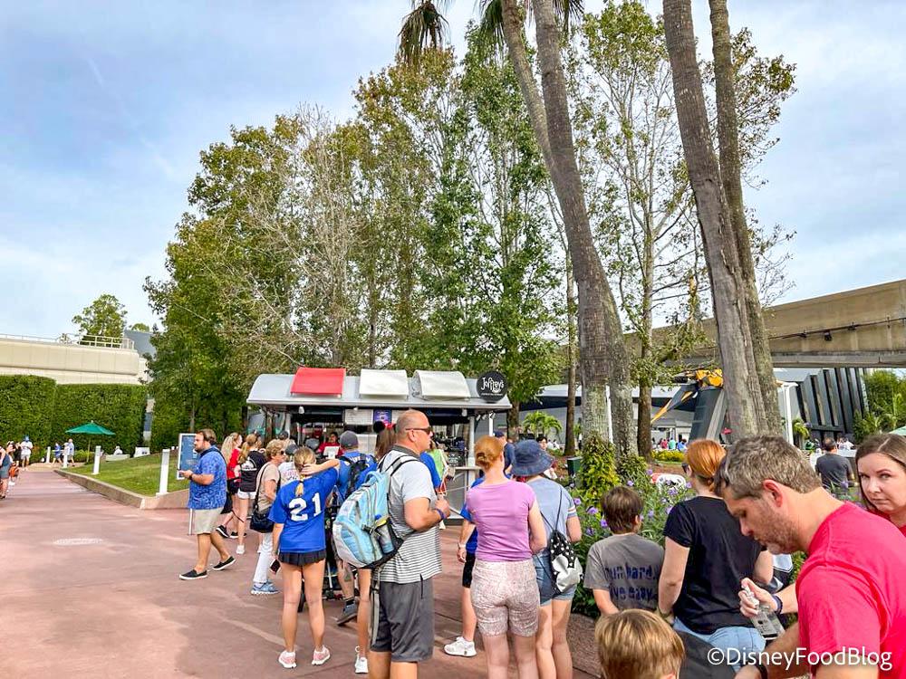 The EPCOT Festival of the Holidays is one of our favorite events of the year, and for good reason! There are plenty of festive snacks to enjoy, but that also means there are plenty of people around to enjoy them. When we first arrived at EPCOT, it was clear there were plenty of people waiting to start their festival day!