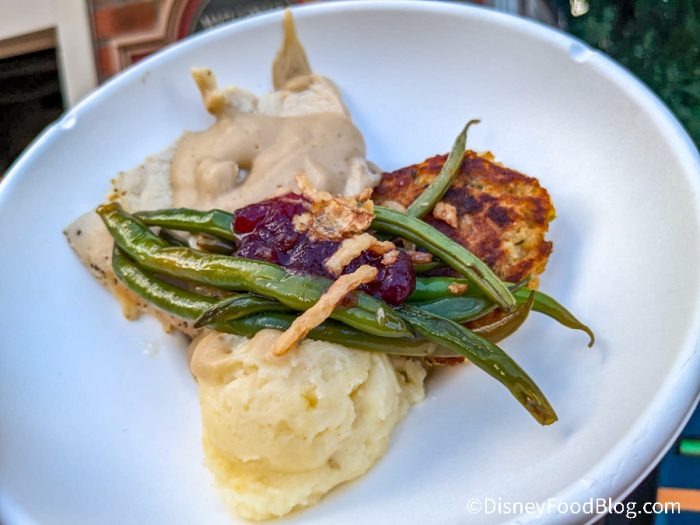 This dish really is a little bit of everything all at once — so if you’re a person who doesn’t like their foods to touch, you might want to skip it. It’s perfectly shareable or would even make a light lunch as you’re walking around the festival. It’s perfectly balanced with a little bit of each Thanksgiving favorite. If you’re looking for a comforting meal from the festival, this is it!