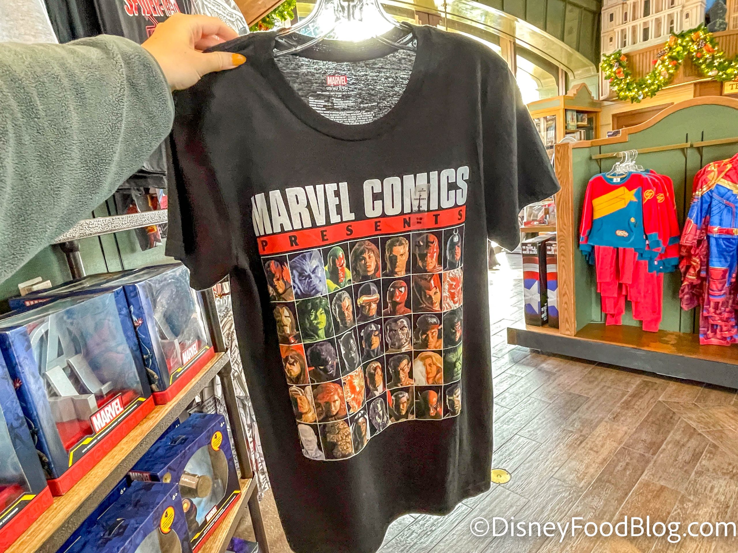 At the entrance of World Showcase, you’ll find Disney Traders, with a fair collection of Marvel merchandise. We spotted this Marvel Comic Shirt…