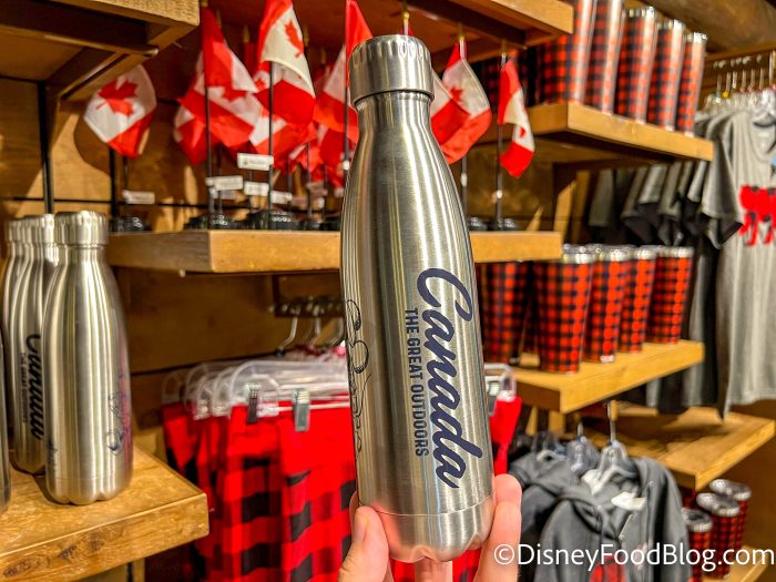 At the gift shop in the Canada Pavilion, we found this water bottle for $29.99.