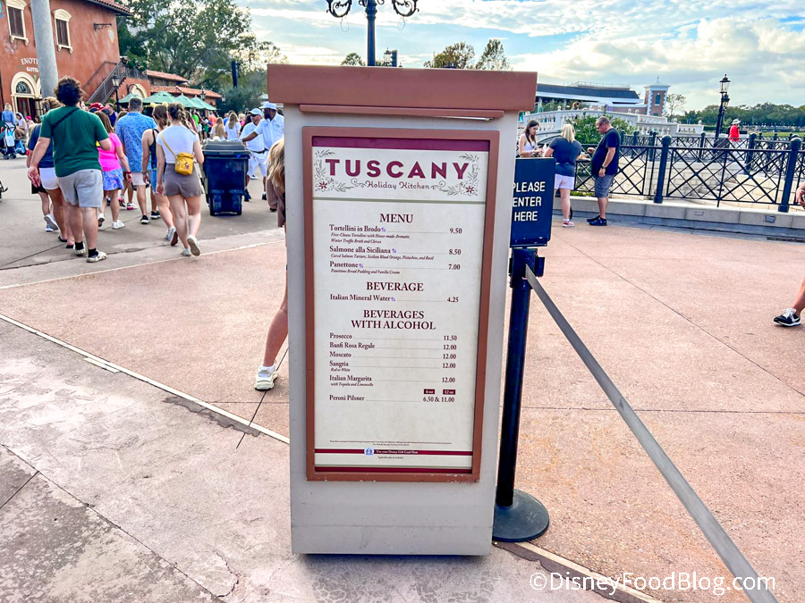 We’ve been making our way through all of the Festival booths, checking out the merchandise, and exploring EVERYTHING the Festival has to offer. But for now, we’re heading to the Tuscany Holiday Kitchen by the Italy pavilion to grab some NEW dishes!