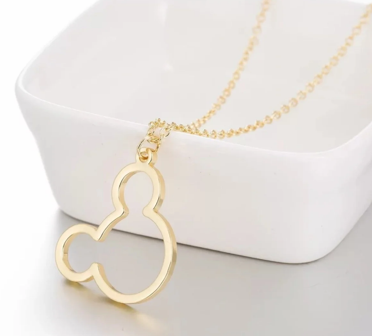 It features a charm outline of Mickey Mouse and comes in a variety of finishes to suit your style. This necklace can be yours for $8.99, marked down from $18.99.