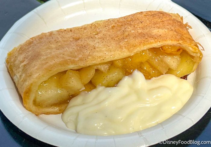Now, for dessert! The Germany booth at EPCOT’s Food and Wine Festival has a great option with this apple strudel. It’s a fun way to try something a bit different from a traditional apple pie!