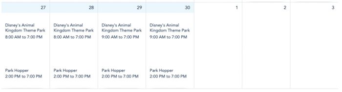 And Disney’s Animal Kingdom will be open from 8AM to 7PM on November 27th & 28th. On November 29th & 30th, the park will be open from 9AM to 7PM.