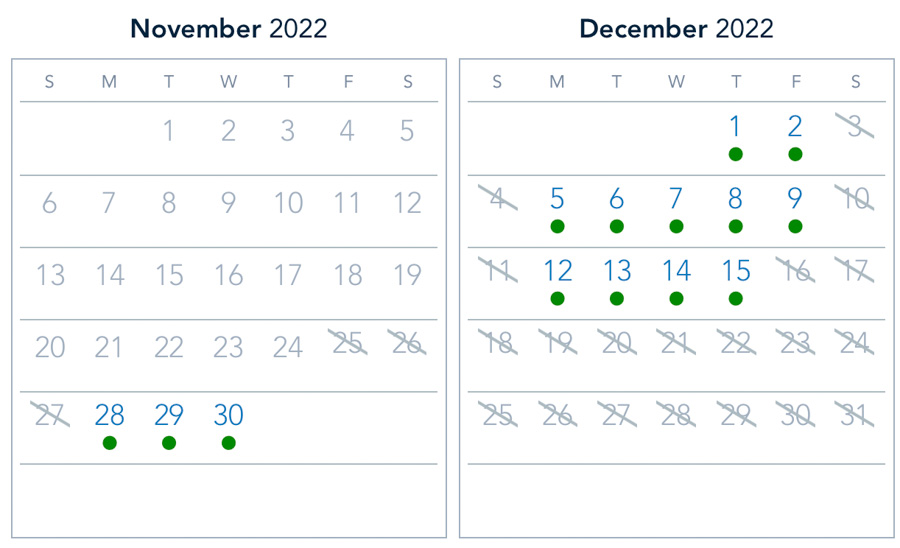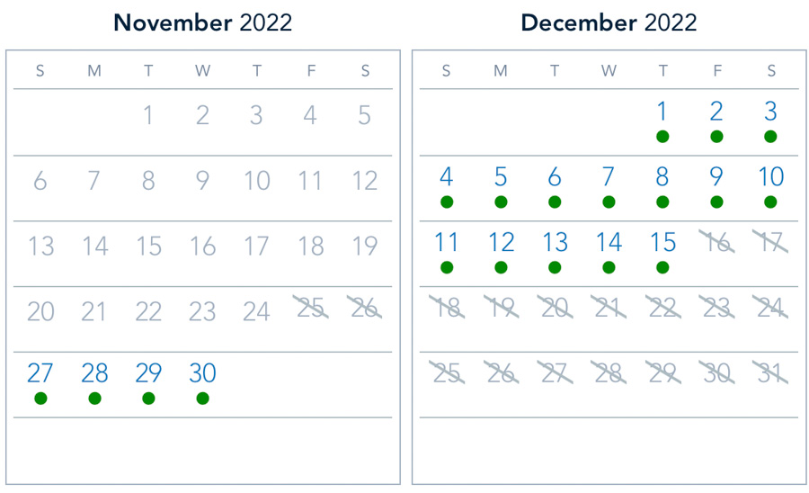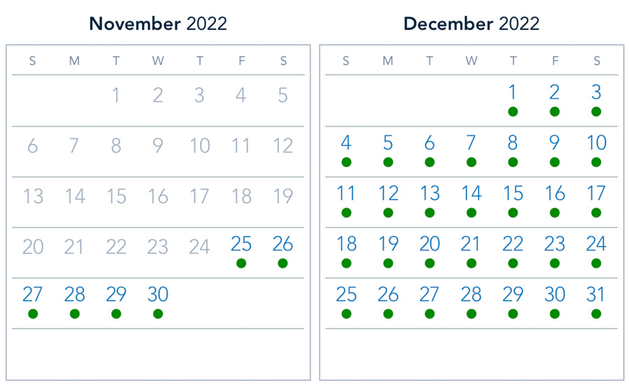 …and so is the beginning of December. But remember, this can always change as the days get closer!