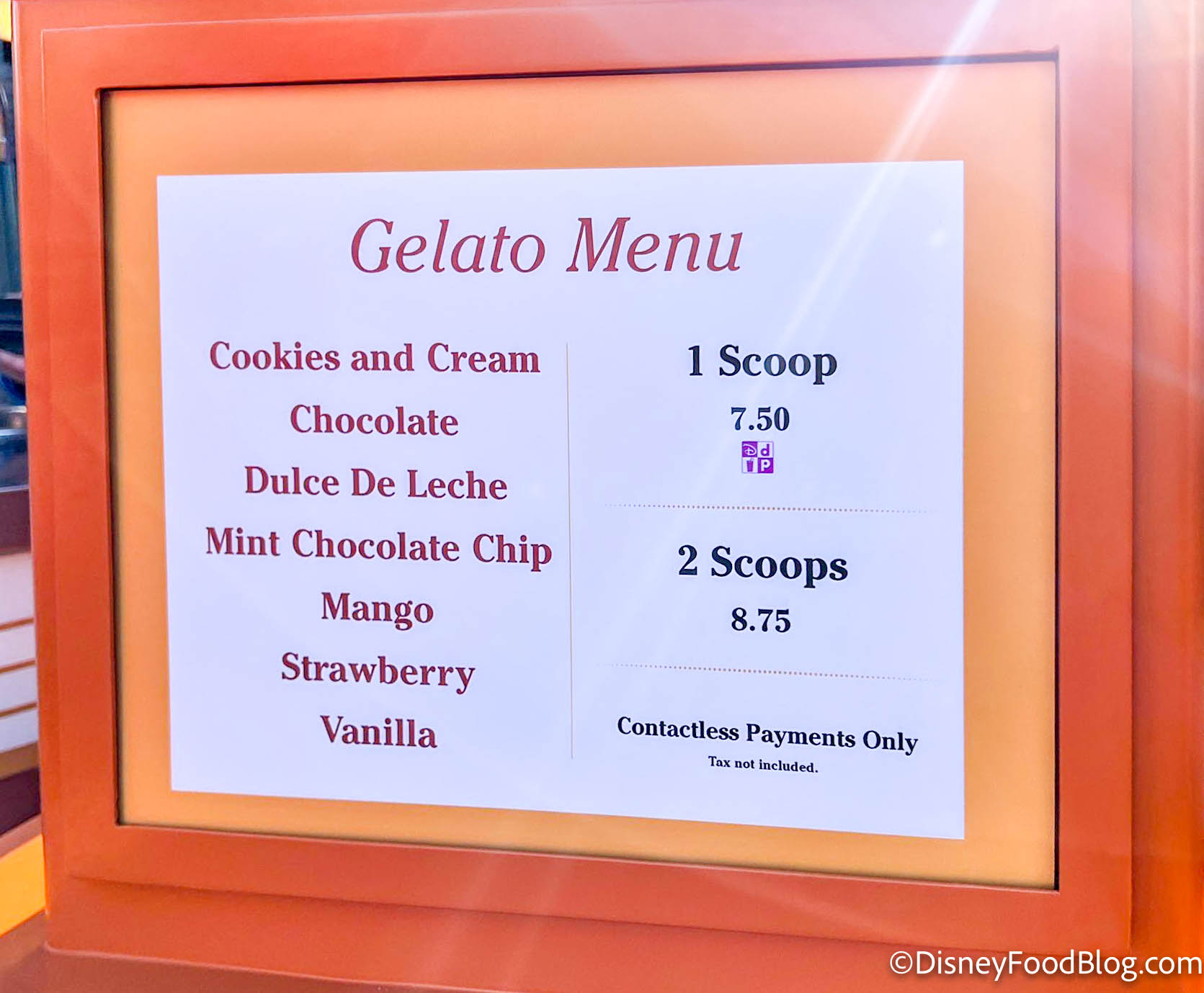 At Disney’s Hollywood Studios, in Muppets Courtyard, you will now find a NEW gelato kiosk! Though it is not branded with the Vivoli il Gelato name, the prices are the same as Vivoli il Gelato in Disney Springs and it looks very similar to the Vivoli cart at Disney’s Riviera Resort (though the one in Hollywood Studios one has a different color scheme). Our receipt also had the Vivoli il Gelato name at the top, so it does appear that this cart is associated with the Vivoli brand.