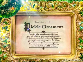 2022-wdw-epcot-what’s new-germany pavilion-die weihnachts ecke-christmas tree ornament-pickle-sign By Sara McOmber Leave a Comment